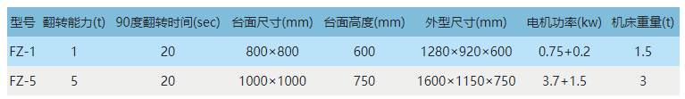FZ系列翻转机是我公司针对模具、模胚料、钢板材料,而专业推出的一款新型模房专用设备,它采用电永磁磁盘快速装夹,可实现工件正面与侧面的90度翻转工作,具备翻模机同等功能,已获国家专利(专利号:ZL200820206325.5)