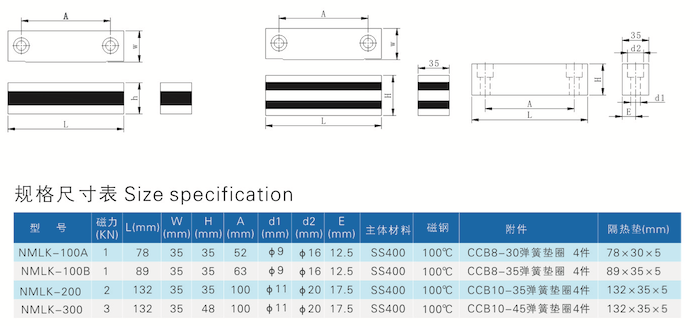 4、NMLK产品采用双磁座安装形式,在同样安装体积下磁力增加一倍,这是本专利产品特有的功能。